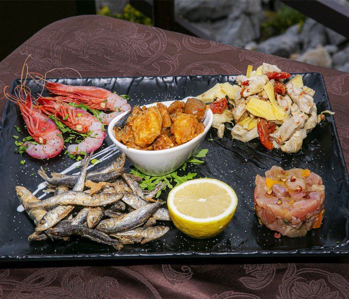Al Porticciolo, a restaurant with fish specialties, offers you set menus, à la carte and themed menus: the fisherman, the sailor and the farmer. That of the fisherman and the sailor offer seafood specialties, all year round: appetizers with raw, smoked and fried fish; mixed salads seasoned with citrus fruits and spices; hot soups and fresh home-made pasta; slices of grilled fish and seafood flavored with spices and citrus.